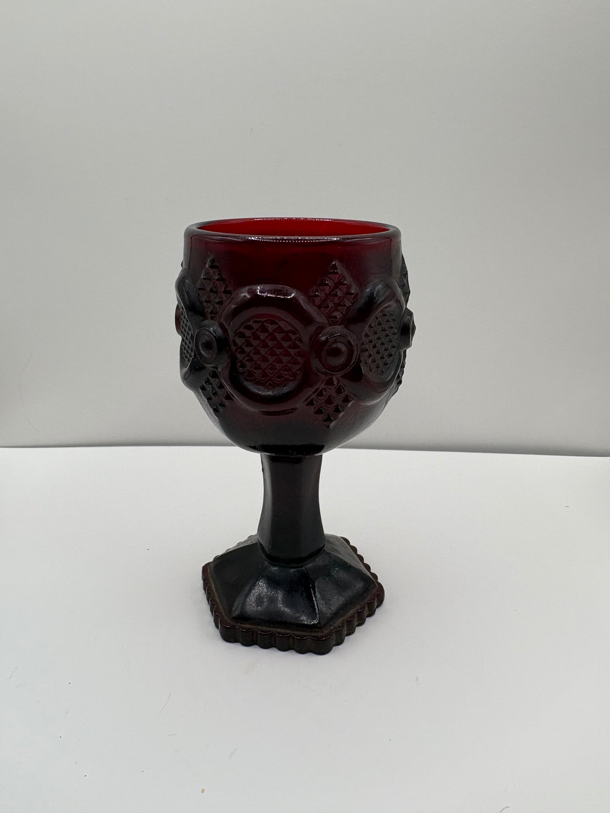 Lot of 3 Vintage Avon 1876 Cape Cod Ruby Red Glass Items, including two bottles and a goblet
