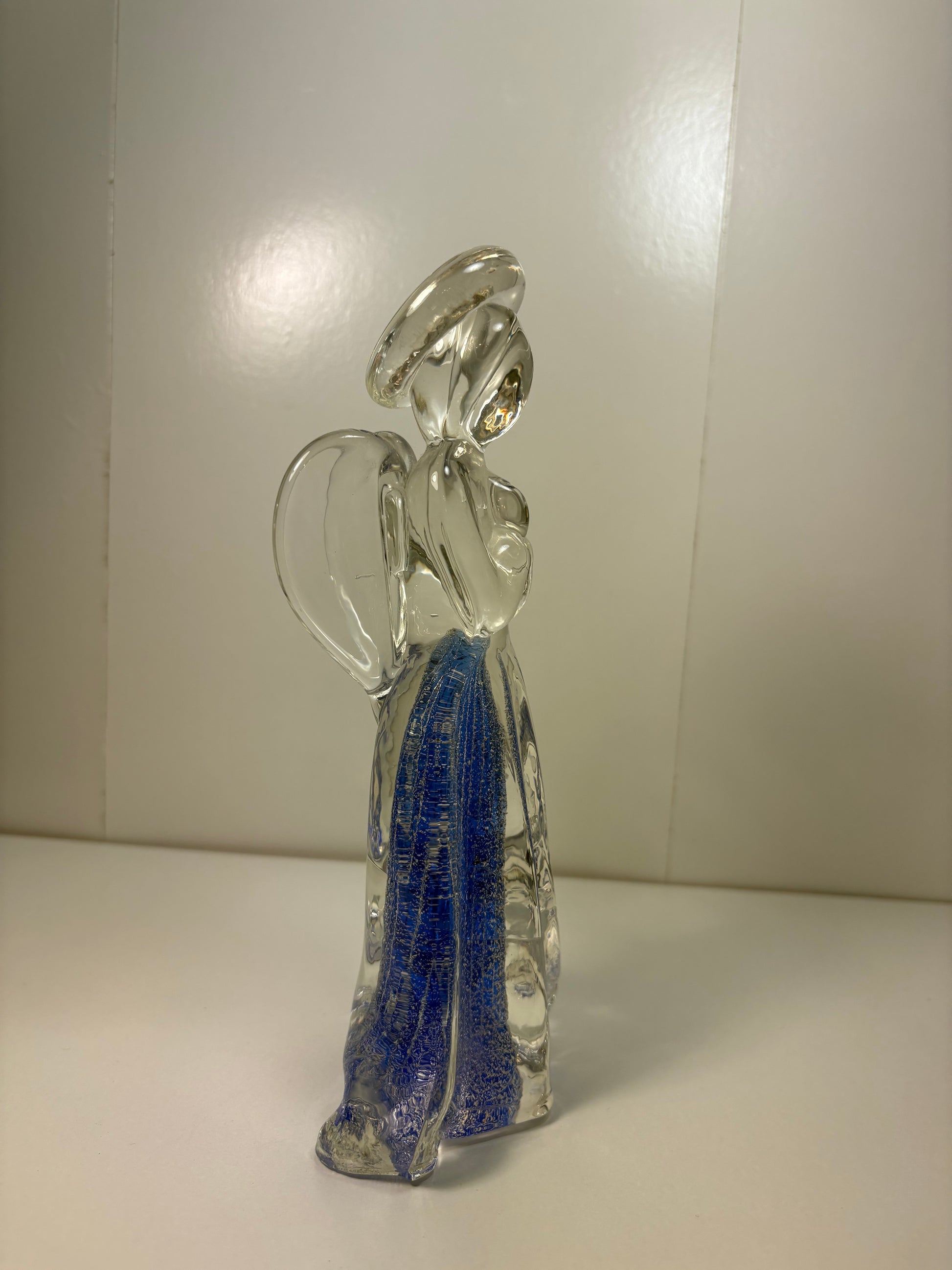Vintage Art Glass Praying Angel Figurine Clear with Blue Silver Fleck