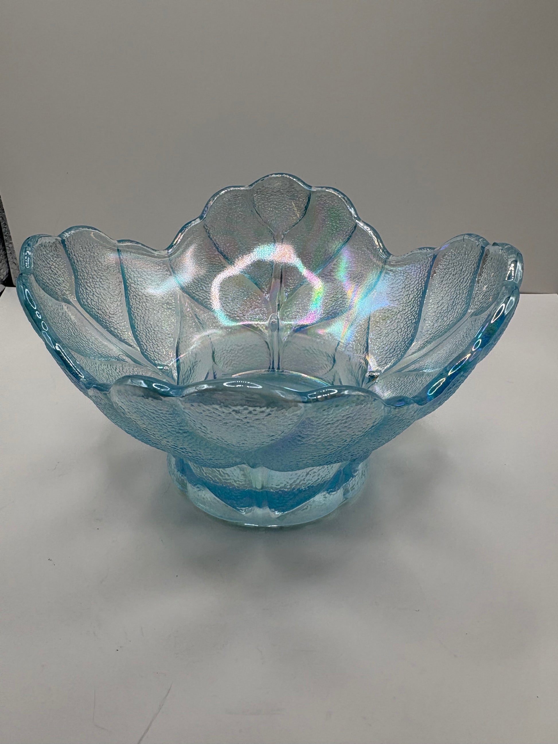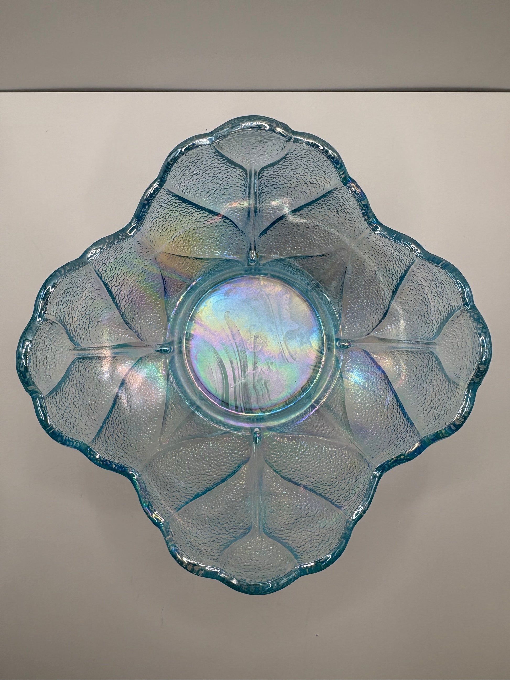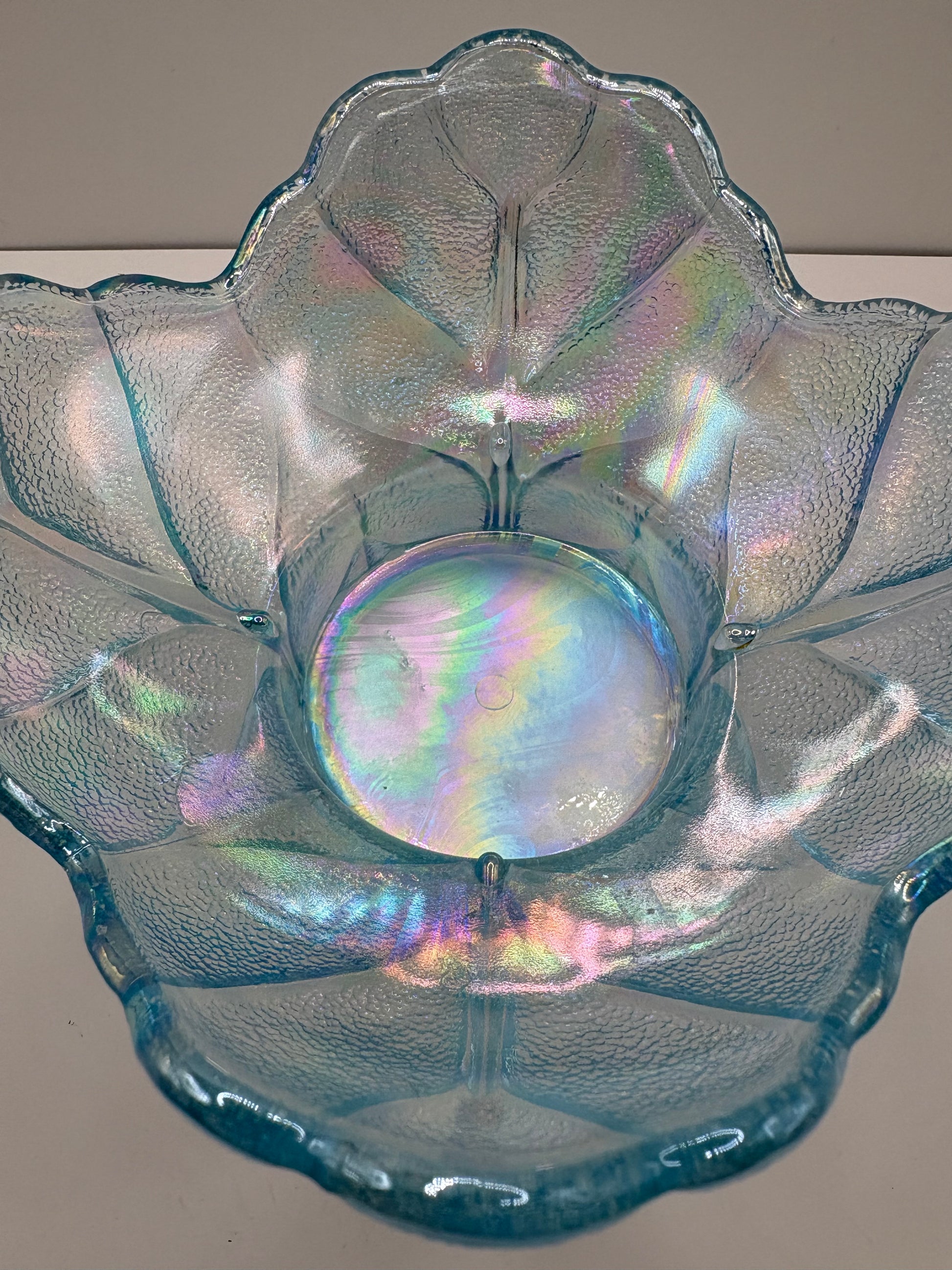 Vintage L.E. Smith "Cabbage Leaf" Light Blue Iridescent Dish